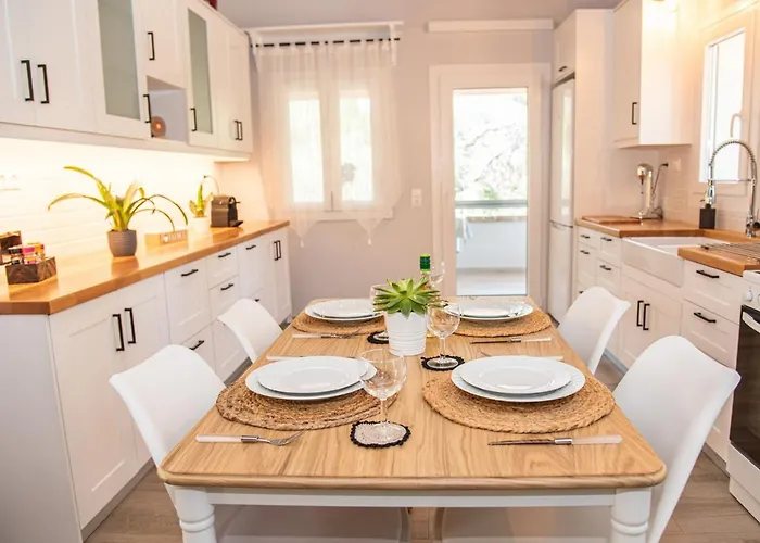 A la hora de comer, la cocina de la Villa Corfu Cicada House invita a preparar tus platos favoritos. La cercanía del jardín proporciona un entorno tranquilo para disfrutar de almuerzos al aire libre, rodeado de naturaleza. Además, puedes explorar los restaurantes locales que ofrecen deliciosos platos griegos, para completar una experiencia gastronómica auténtica.